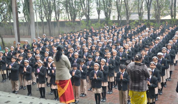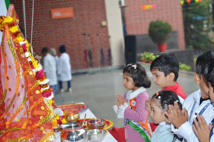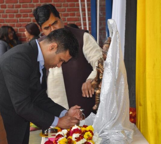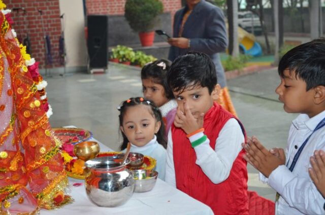 A traditional Saraswati Puja was performed following sacred rituals and Vedic chants in the esteemed presence and guidance of senior administrators Mr. Vishwas Sharma Sir and Mr. Shivam Mohan Sharma Sir. The entire school community participated with devotion, offering flowers and prayers while seeking blessings for academic excellence, clarity of thought, discipline, and moral growth. The puja beautifully reflected the school’s respect for Indian culture and spiritual heritage.