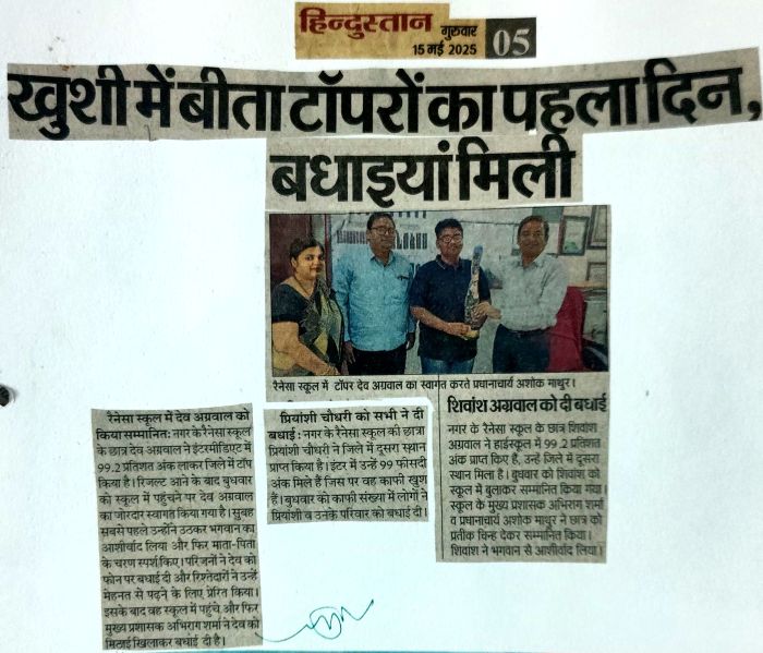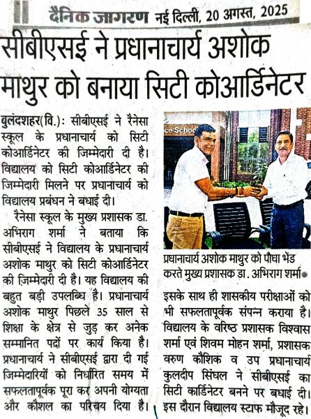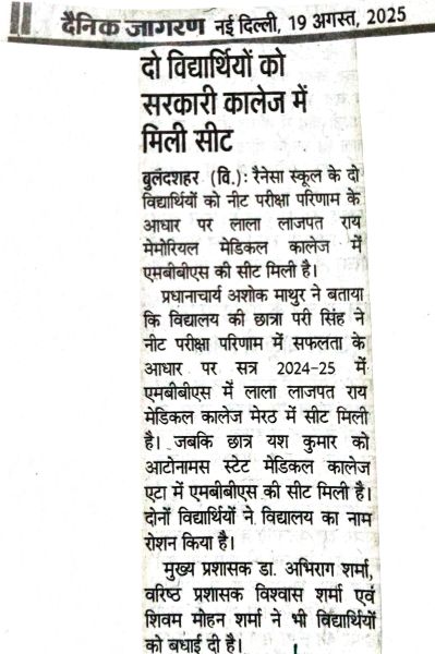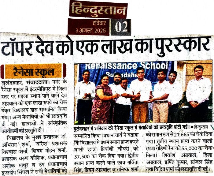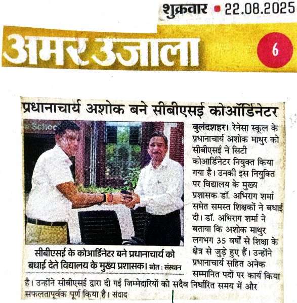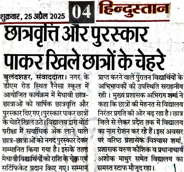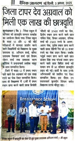 Renaissance school was established in the year 1999 as a co-educational institution affiliated to C.B.S.E. New Delhi and is run by Late Shiv Shankar Memorial Educational Society. The school is Located in Bulandshahr City, NCR Region, which is about 65 km. from Delhi.